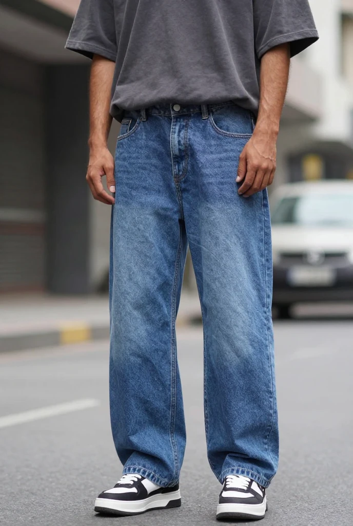 Wear streetwear jeans with an oversized t-shirt and sneakers for a relaxed outfit.
